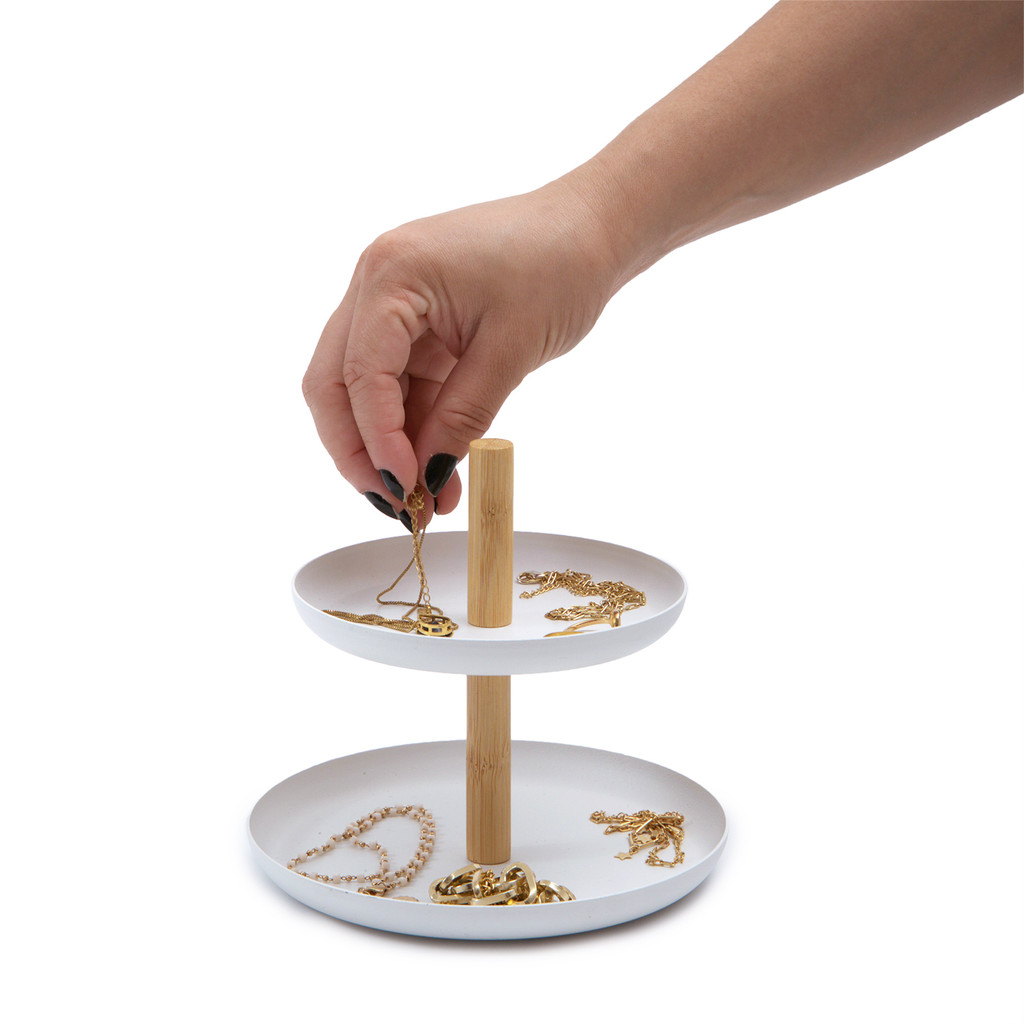Esse é o porta-acessórios de metal e bambu 16cm da OIKOS. Mais organização: ótimo para armazenar e organizar anéis, brincos, pulseiras e outros acessórios. com os itens sempre à vista, fica mais fácil encontrar aquele anel na hora de se arrumar ;) Multiuso: além de manter a organização dos seus acessórios, ele também é bacana para armazenar objetos menores como clips, moedas, chaves, e muito mais. Versátil: pode ser colocado na bancada do banheiro, no quarto, no closet e onde mais você quiser. você que manda! Design decorativo: além de funcional, ele é um lindo item de decoração. o tom natural do bambu combinado com o metal branco traz mais leveza e bossa para o ambiente. Bambu e metal: combinação super resistente e tendência na decoração. Composição: esse é o nosso tamanho 16x16x15cm, mas também contamos com um tamanho maior de 20x20x24cm. que tal uma composição com os dois porta-acessórios? fica ainda mais funcional e garante um ambiente bonito e charmoso!