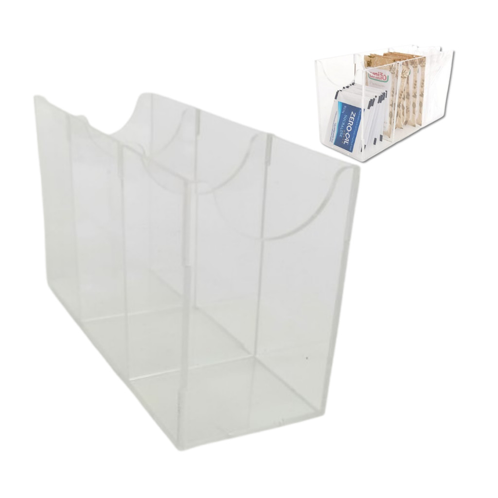 Porta Açúcar com 3 Divisórias em Acrílico Transparente Adoçante Mexedor Cantinho Café Decoração