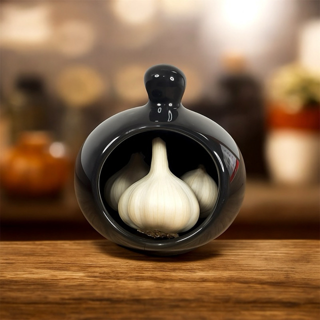 Porta Alho Em Cerâmica Preto Feito A Mão