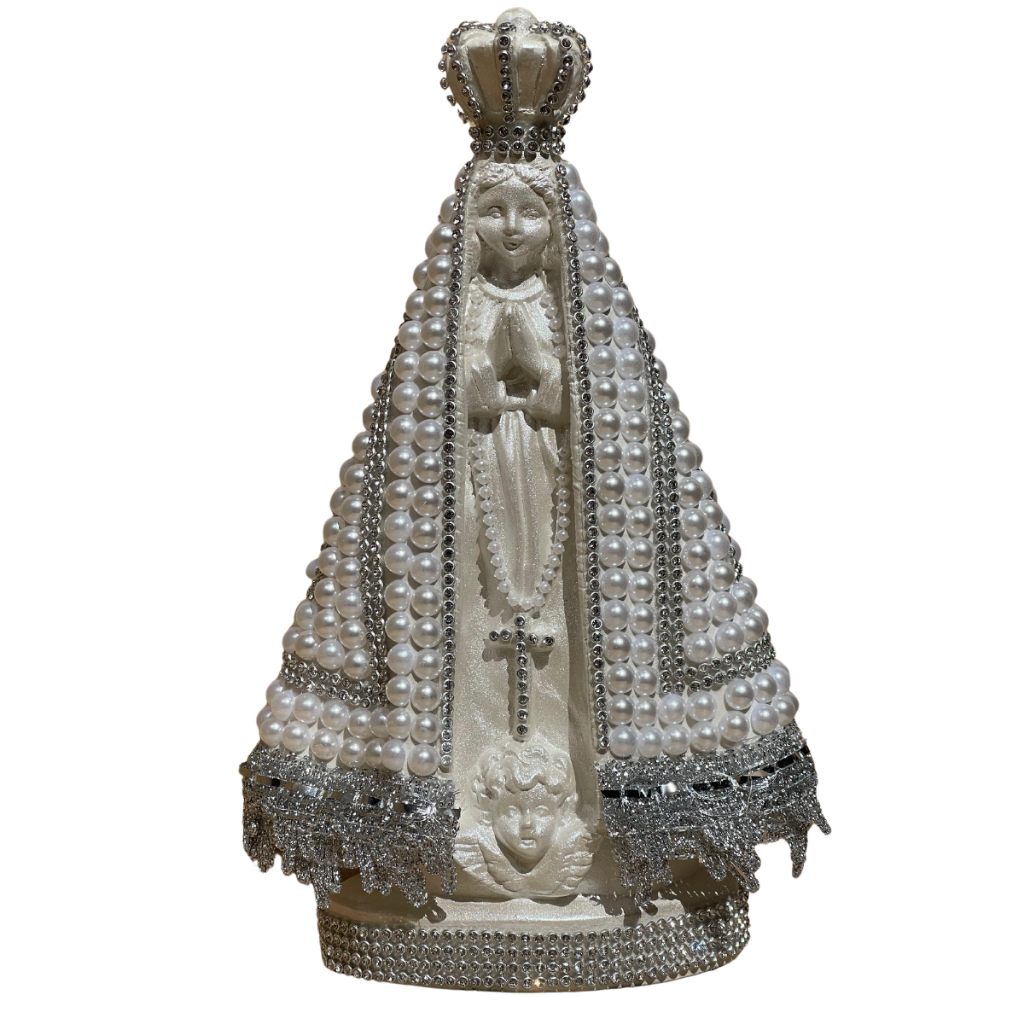 Apresentamos com emoção a Imagem de Nossa Senhora Aparecida 25cm Noiva, uma peça de devoção excepcionalmente elegante e significativa. Esta imagem é acompanhada de um Porta Aliança cuidadosamente decorado com pérolas, strass e detalhes em prata, criando um ambiente verdadeiramente especial para um dos momentos mais importantes de sua vida. Características do Conjunto: Imagem de Nossa Senhora Aparecida 25cm: Uma representação graciosa da padroeira do Brasil, esta imagem exala serenidade e bênçãos, servindo como um farol de proteção e amor. Porta Aliança Decorado: O porta aliança adornado com pérolas, strass e detalhes prateados adiciona um toque de elegância e sofisticação à sua cerimônia de casamento. Devoção e Matrimônio: Ao unir a imagem de Nossa Senhora Aparecida à celebração do matrimônio, você está convidando bênçãos divinas para a sua vida a dois. Detalhes Precisos: Cada pérola, strass e toque prateado é aplicado com a mais alta atenção aos detalhes, garantindo uma peça que será lembrada para sempre. Memórias Duradouras: Esta peça também serve como uma recordação do seu dia especial, trazendo a presença da Nossa Senhora Aparecida ao longo de sua jornada conjugal. Celebre o amor e a fé com a Imagem de Nossa Senhora Aparecida 25cm Noiva e o Porta Aliança decorado. Esta combinação única de devoção e matrimônio cria um cenário de significado profundo e beleza inigualável. Observação: Devido à natureza artesanal da peça, pequenas variações podem ocorrer nas cores e detalhes. Produto a PRONTA ENTREGA! Envio em até 24horas após confirmação do pedido. Que Nossa Senhora Aparecida cubra com seu manto. Deus os abençoe. Boas compras.
