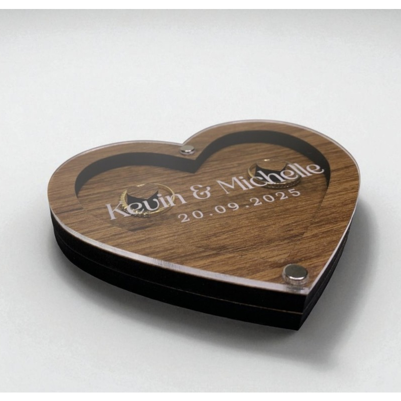 Porta Alianças Coração Personalizado Casamento Nomes e Data MDF + Acrílico 6mm de espessura PRODUTO ARTESANAL