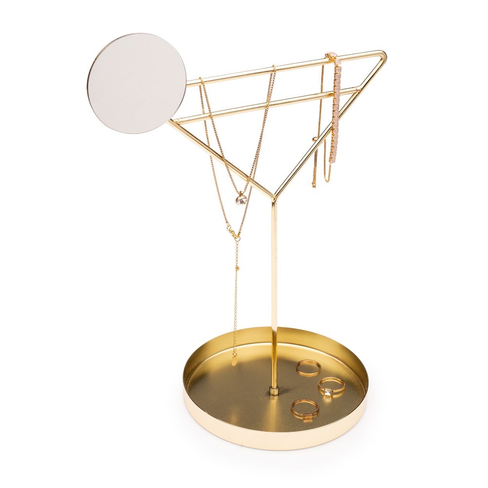 Um brinde à beleza! Se você é do tipo que adora caprichar nos looks e ama tomar um bom drink com as amigas, nada melhor do que poder contar com um porta-bijoux que é a máxima definição de estilo e elegância, não é mesmo? Feito em metal dourado e contando com um mini espelho redondo no topo, ele é a aposta certa para dar aquele toque de sofisticação e alegria à sua penteadeira, já que tem o formato de uma linda taça de martini. Contém: 1 base e 1 porta-bijoux. Não podem ser vendidos separadamente. Tamanho do porta-bijoux (LxA): 20 cm x 27 cm Diâmetro base: 13 cm Limpar somente com pano seco. Teme químicos e abrasivos. Validade indeterminada.