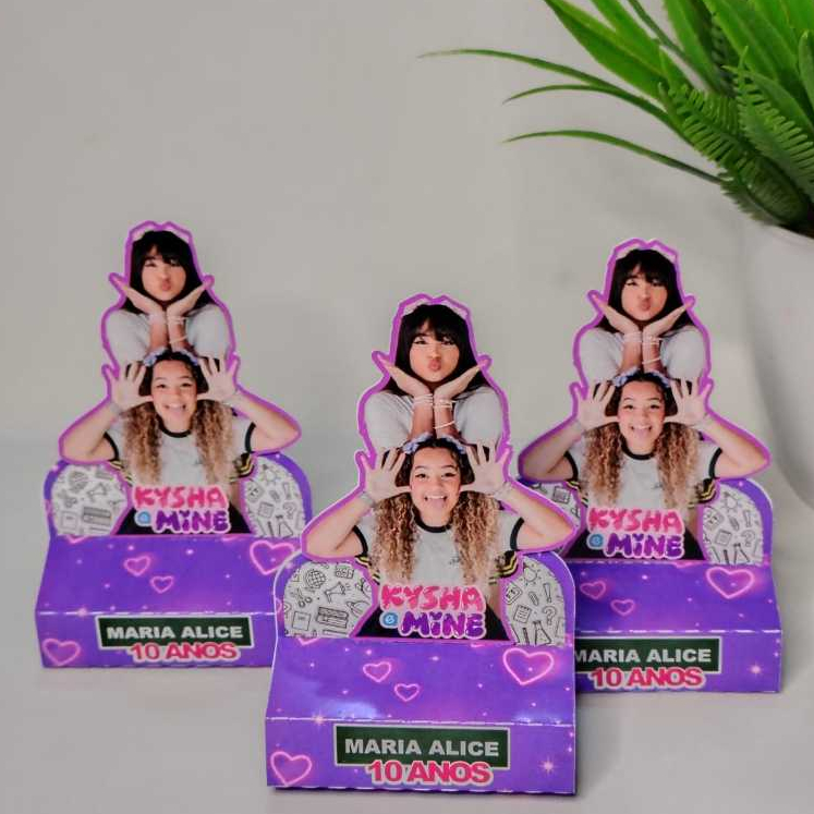 ATENÇÃO A DESCRIÇÃO! Porta Bis Duplo no Tema Kysha e Mine feito em papel fotográfico 180g impressão de alta qualidade. Cabe 2 bis por caixinhas, NÃO ACOMPANHA BIS! Os portas bis já vão colados e dobrados. Favor informar em até 48h nome + idade do aniversariante, sem essas informações dentro desse prazo o produto será enviado apenas com o tema. Não mudamos a arte! ATENÇÃO SEMPRE AO PRAZO DE PRODUÇÃO E CONSIDERAR SEMPRE A DATA MÁXIMA. Devida a alta demanda não passamos pedidos na frente, seguimos a ordem de chegada. Peça o quanto antes para evitar chateações quanto a data da festa. Não nos responsabilizamos pelo tempo de transporte! Não achou o tema que deseja? Nos chama no chat para verificar temas disponíveis.