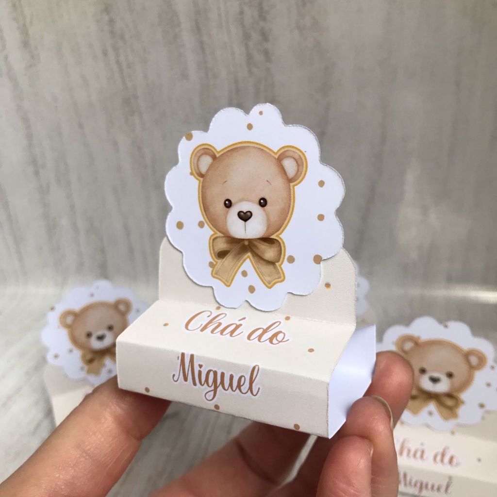 Porta Bis Duplo personalizado Chá Revelação Ursinho/ Chá de bebê/Lembrancinhas para festa Infantil/ marrom
