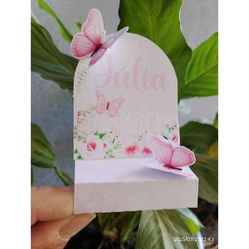 LEIA A DESCRIÇÃO COM ATENÇÃO ANTES DE FINALIZAR SUA COMPRA O Porta Bis Duplo Personalizado é perfeito para deixar sua festa ainda mais encantadora Ideal para festas infantis, aniversários, chás e comemorações especiais no tema Jardim das Borboletas / Jardim Encantado. Personalizamos em outros temas Caso deseje outro tema, consulte a disponibilidade pelo chat antes da compra. INFORMAÇÕES DO PRODUTO ✔ Produto enviado no modelo PEGUE E MONTE ✔ Já vai cortado e vincado, facilitando a montagem ✔ Colagem indicada com: cola quente, cola branca ou cola pano ✔ Acompanha: base, display personalizado e borboletas decorativas ✔ Não acompanha chocolates ⏳ PRAZO DE PRODUÇÃO 🗓️ Até 15 dias úteis para produção (não inclui finais de semana e feriados) ⚠️ Atenção: verifique o prazo total de produção + envio da transportadora para garantir que o produto chegue antes do seu evento. PERSONALIZAÇÃO Os dados para personalização (nome, idade, etc.) devem ser enviados pelo chat em até 24 horas antes ou após a compra. Caso os dados não sejam enviados dentro do prazo, o produto será enviado sem personalização. Com a frase: "A FLOR MAIS LINDA ,DO NOSSO JARDIM" 💬 Ficou com dúvidas? É só chamar no chat — será um prazer te atender