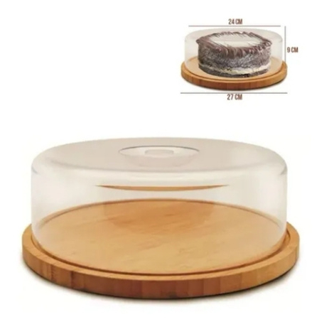 Porta Bolo Com Tampa Em Acrílico E Bandeja Em Bambu Mimo Style