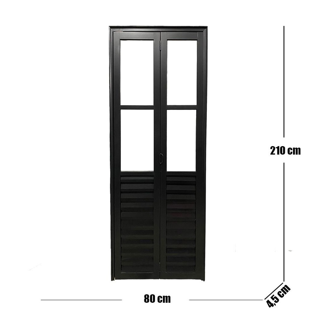 Porta Camarão Palheta com vidro fabricada pela Bergamo Portas e Janelas feita com alumínio de alta qualidade e rigoroso processo de produção. A peça da Linha 25 conta com pintura eletrostática preta e acompanha batente, vidro e trinco. Feita sob as medidas de 210cm de altura, 80cm de largura, 4,5cm de espessura e 15kg. Com abertura na esquerda. Muito procurada para ser utilizada em banheiro, dispensa, cozinha e lavanderia. É resistente a exposição de luz solar e chuva, porém é mais recomendada para ser instalada em ambientes internos, visto que não possui fechadura e apenas trinco. NÃO recomendamos o uso de espuma expansiva na instalação, pois pode danificar o produto. Deve estar em nível e prumo e é imprescindível estar em esquadro para que a funcionalidade e qualidade sejam de 100% Peso (kg): 15 Elétrica: Não Garantia: 12 Meses Altura (cm): 210 Largura (cm): 80 Cor do Vidro: Incolor Espessura (cm): 4.5 Possui Grade: Não Tipo de Vidro: Mini Boreal Cor do Batente: Preto Modelo da Porta: Camarão Acompanha Trinco: Sim Desenho do Vidro: Mini Boreal Escala de Brilho: Semi-Brilho Lado de Abertura: Esquerda Textura da Porta: Com detalhe vidro Acompanha Batedor: Não Acompanha Batente: Sim Acompanha Puxador: Não Origem do Produto: Nacional Tipo de Dobradiça: Camarão Espessura do Vidro: 3 Largura do Batente: 4.5 Acompanha Dobradiça: 3 Acompanha Fechadura: Não Acompanha Guarnição: Não Material do Batente: Alumínio Material da Dobradiça: Alumínio Possui Isolamento Acústico: Não Acompanha Manual de Instalação: Sim Acabamento (Construção e Acabamento): Esmaltada Material Principal Construção e Acabamento: Alumínio Marca: Esquadrias Bergamo Cor do Produto: Preto Itens Inclusos: 01 porta Cor Predominante: Preto Linha ou Coleção: Linha 25 Medida do Vão (A x L): 63cm