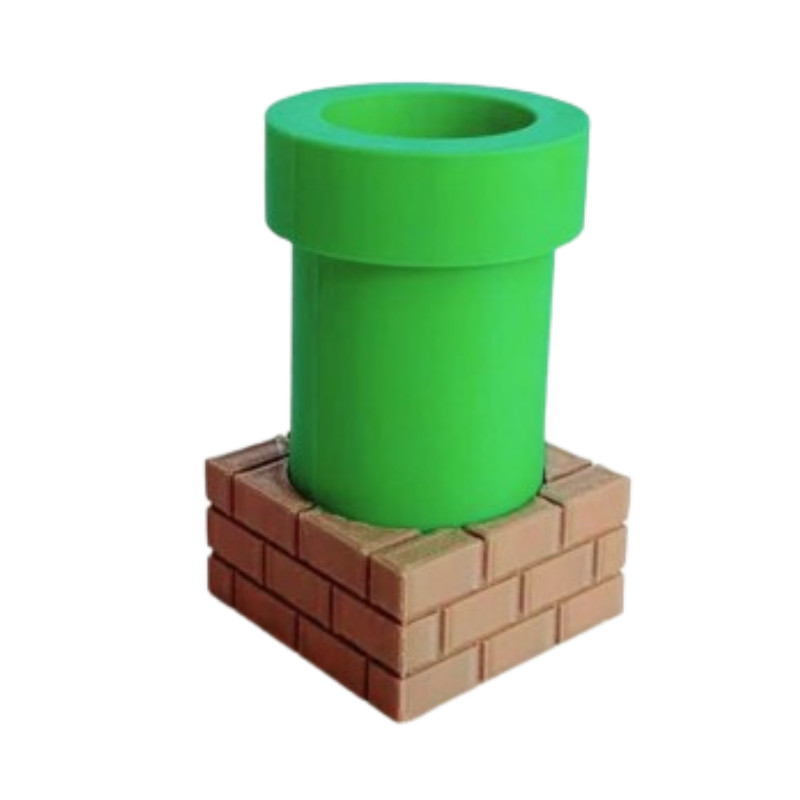 Porta Caneta Cano Super Mario Presente Gamer Mesa Escritorio Mostre como você é fã do personagem mais querido do Games e decore seu escritório ou quarto com esse Lindo Porta Canetas e Lápis. Perfeito para expressar seu lado nerd e organizar suas canetas e lápis. Nosso porta lápis e caneta é um organizador de mesa super prático e decorativo. Com ele, você pode setorizar seus itens escolares ou de escritório de forma divertida. Dimensões: Altura: 10 cm Largura: 6 cm Profundidade: 6 cm Cores: Marrom e Verde Material: Feito de PLA - plástico biodegradável Cuidados e Conservação: Produzido em impressora 3D, podendo ocorrer marcas de impressão (não compromete a qualidade do produto). Para limpeza utilize somente pano úmido em agua. ATENÇÃO: IMAGENS MERAMENTE ILUSTRATIVAS NÃO ACOMPANHA AS CANETAS.