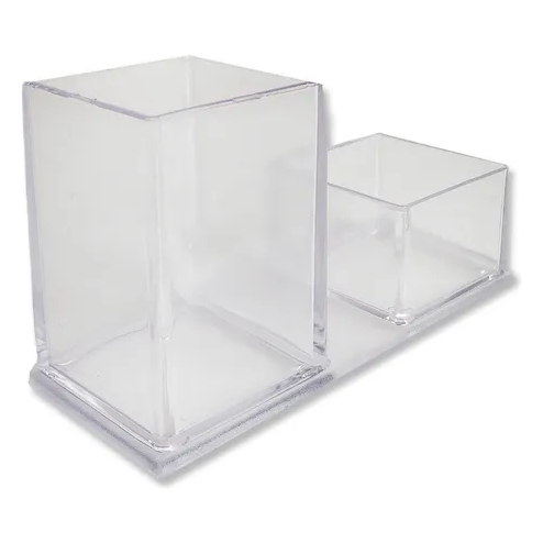 Porta Canetas e Clipes Porta Duplo Treco Acrílico Transparente ou Preto Novacril