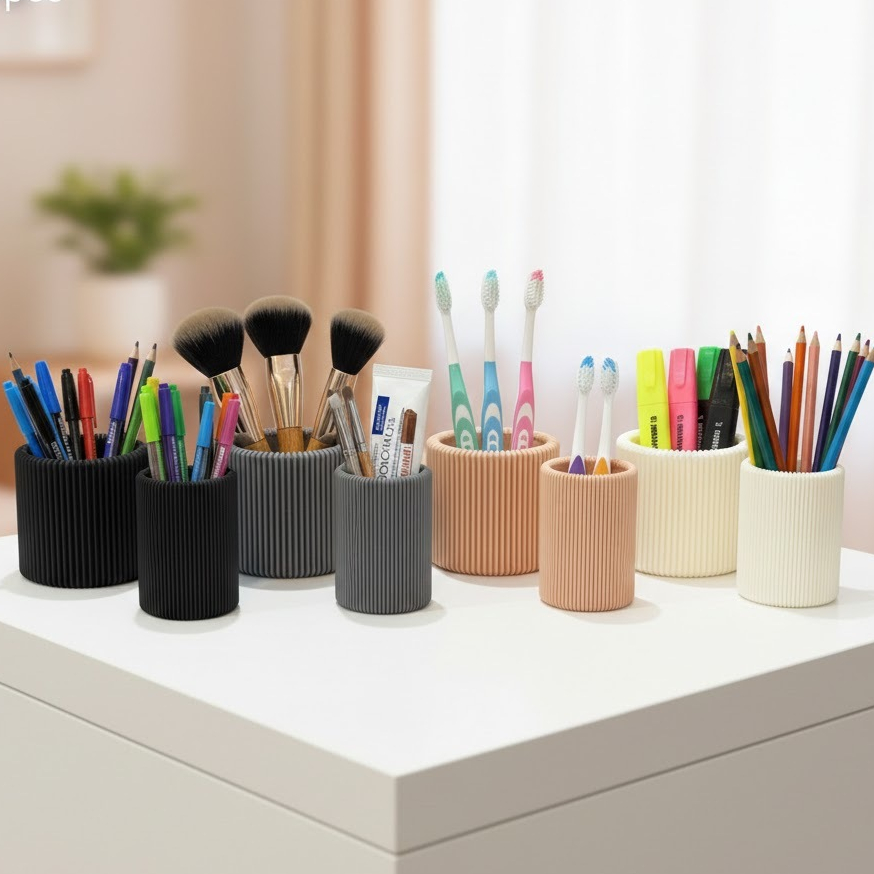 Dê um fim à bagunça da sua mesa com elegância! O Organizador Canelado Minimalista é a peça chave para quem busca um ambiente organizado, limpo e com design moderno. Inspirado no estilo Nórdico/Escandinavo, suas linhas texturizadas transformam um simples "porta-treco" em um item de decoração que chama atenção, seja no escritório, no quarto ou no banheiro. 🏆 SUGESTÕES DE USO (Multiuso): ✏️ Porta Canetas: Ideal para lápis, canetas, marca-textos, tesouras e réguas. 💄 Pincel de Maquiagem: Perfeito para pincéis, lápis de olho, rímel e gloss. 🪥 Banheiro: Organiza escovas de dentes, pasta e giletes (Material resistente à umidade). 📎 Porta Treco: Guarde clips, chaves, moedas, cabos e pequenos objetos. 🍂 Decoração: Pode ser usado com flores secas ou artificiais. 📏 TAMANHOS E CAPACIDADE (Escolha na Variação): PEQUENO (6 x 6 x 8 cm): Compacto: Ideal para mesas menores, itens baixos, cotonetes, batons ou clips. GRANDE (9 x 9 x 8 cm): Robusto: Ideal para quem tem muito material. Comporta kits completos de pincéis, muitas canetas, tesouras grandes ou controles remotos. 🎨 CORES DISPONÍVEIS: Preto: Sofisticado e discreto (combina com setup gamer). Branco: Clean e minimalista. Cinza: Moderno e industrial. Nude / Rosê: Tom pastel suave e aconchegante (Tendência de decoração). 🌱 MATERIAL ECOLÓGICO (PLA): Produzido através de Impressão 3D com PLA (Plástico Biodegradável), um material derivado de fontes renováveis (como amido de milho) que não agride o meio ambiente. Nota: A peça possui a textura característica da impressão 3D (finas linhas horizontais), o que confere um acabamento acetinado único e exclusivo. 📦 O QUE VEM NA CAIXA? 01x Organizador Canelado (na cor e tamanho selecionados no momento da compra). Embalagem segura com proteção reforçada para envio. Tags: