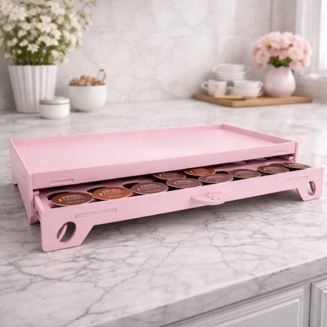 Porta Capsulas Dolce Gusto 40 Cápsulas Bandeja 50x30 Preto e Rosa Mdf