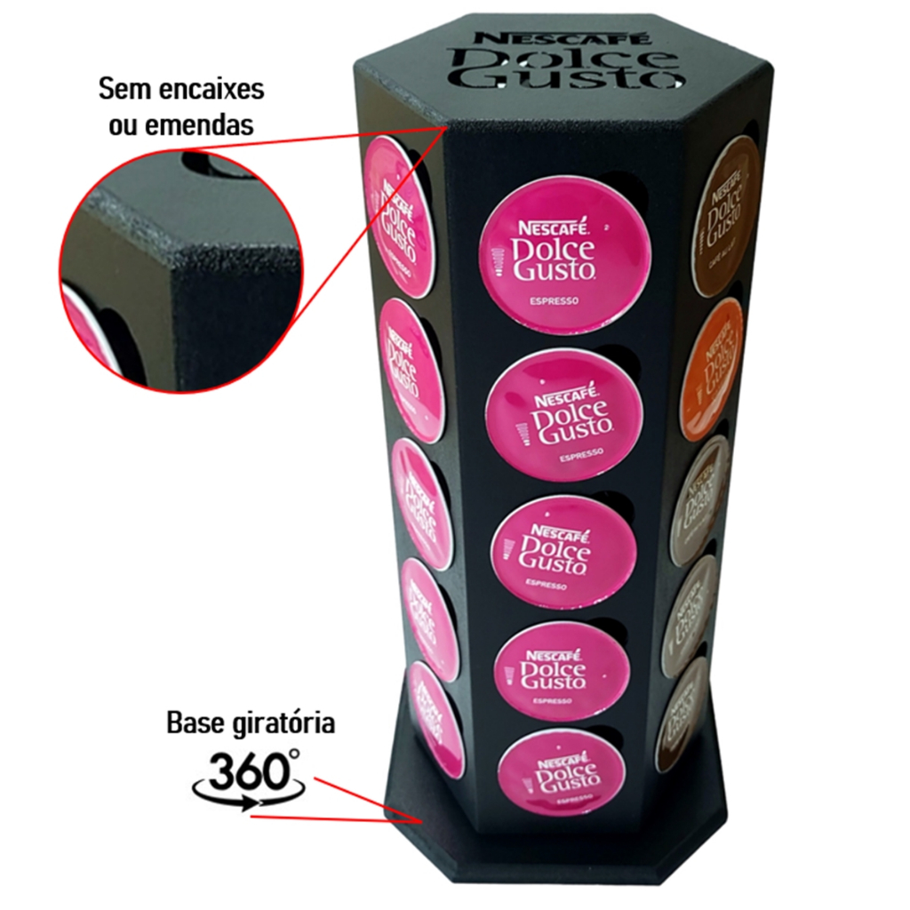 Porta Cápsulas DOLCE GUSTO Suporte 30 Cápsulas Giratório TORRE Organizador Cantinho Café Dolce MDF