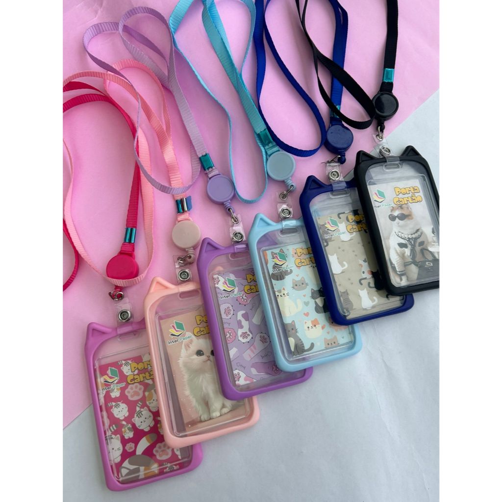 Porta Cartão Crachá Gatinho Com Cordão Retrátil Com Capa