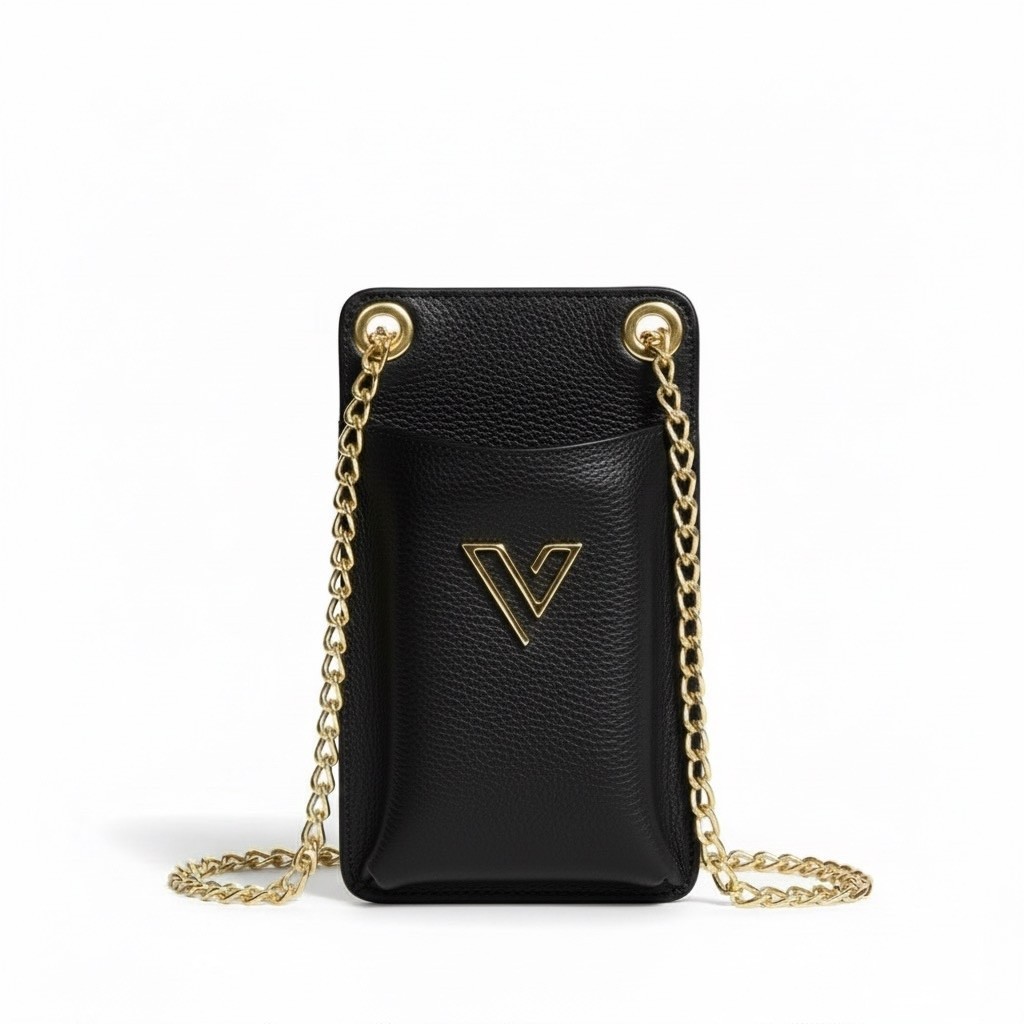 Porta Celular Vittal Kátia em Couro Legitimo Preto Caramelo