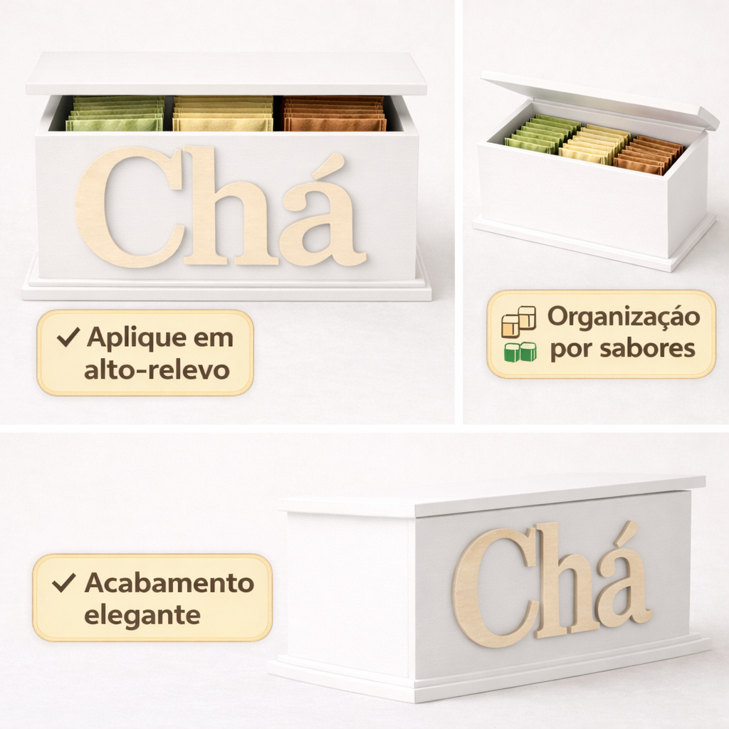 | Porta Chá Em MDF Branco Com Divisória Cantinho Do Café este produto | R$ 20,15 | 69% | 4.9/5 | 26 |
