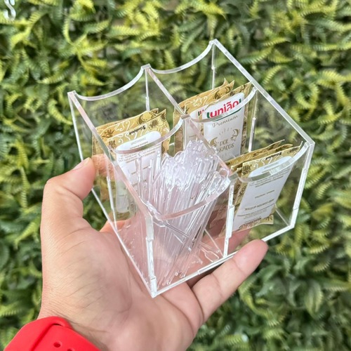 Porta Chá + Porta Sachês Açucar C/ 4 Nichos Acrílico