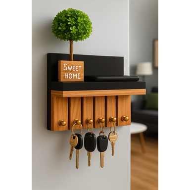 Porta Chave De Parede Ripado Com Prateleira Em MDF Feito com MDF de 15 mm Na cores MDF Branco e MDF Madeirado Medidas Largura 25 CM Altura 15 CM Pratileira com 8 CM