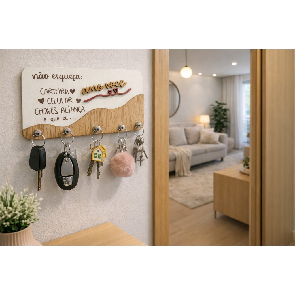 Porta Chave Personalizado Com Frase Em MDF Decorativo para Sala e Quarto