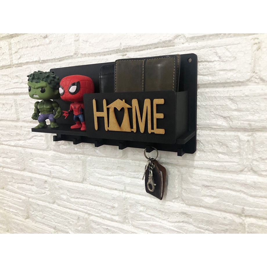 Porta Chaves Carteira Decorativo Moderno para Cozinha ou Sala em MDF Preto 6 Ganchos Envio Imediato