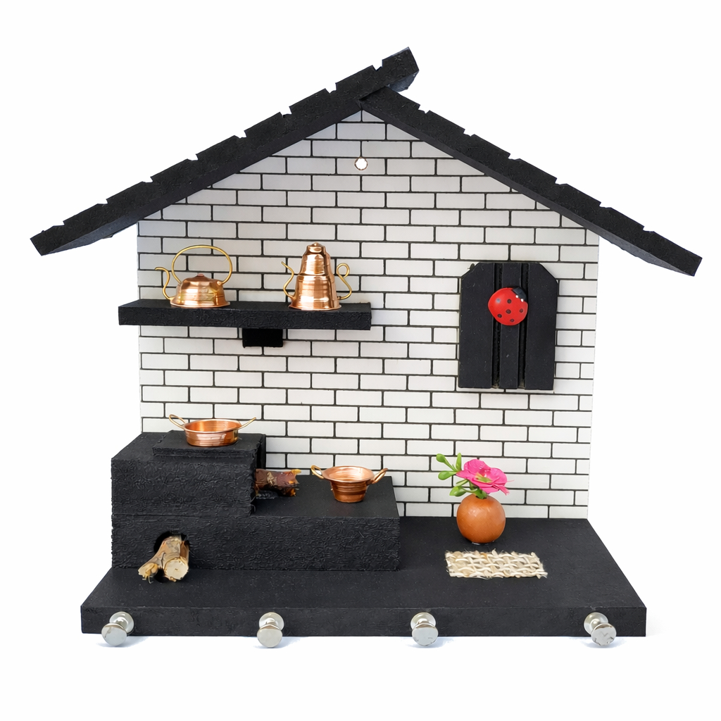 Porta Chaves Casinha Mineira em Madeira MEDIA l Artesanato com Miniaturas em Cobre e Flor Decorativa