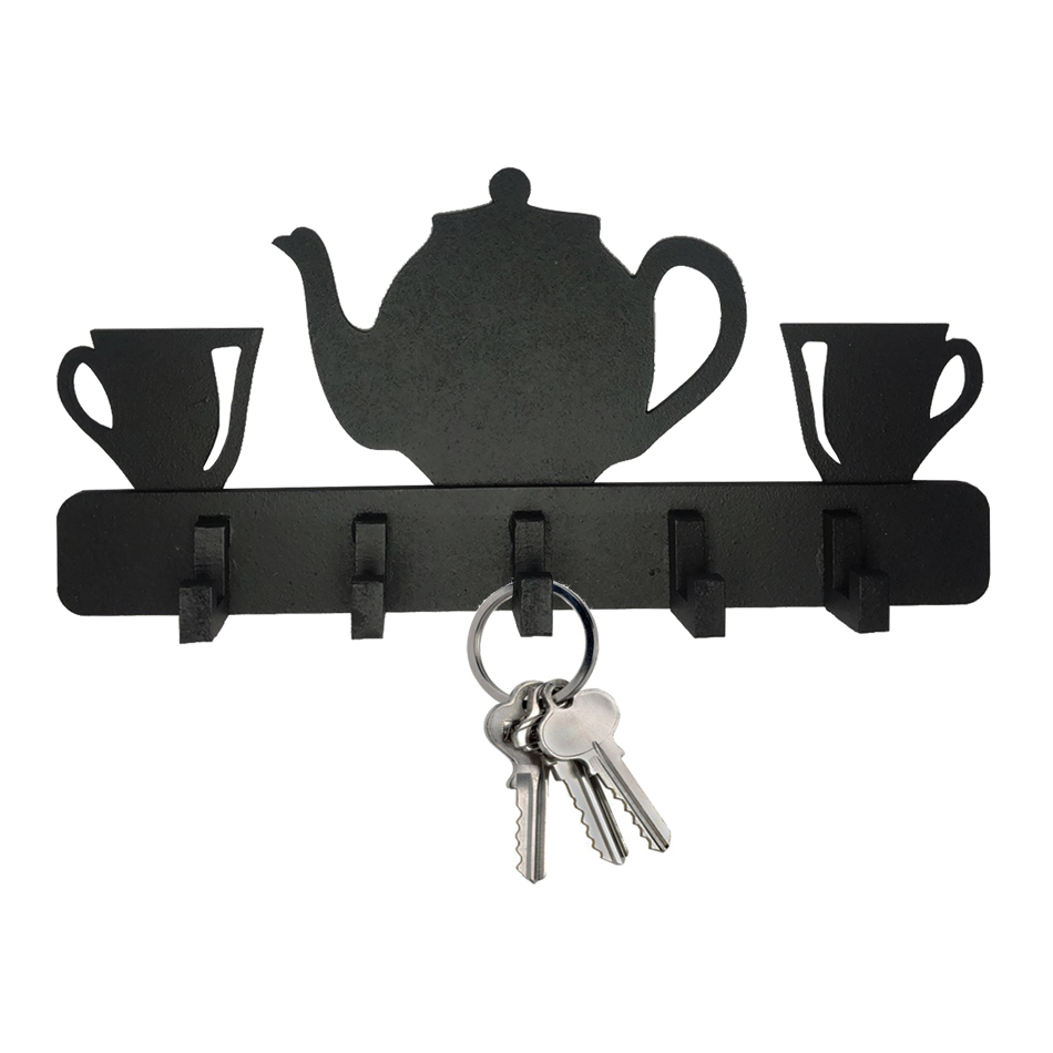 Porta Chaves Criativo Vazado BULE E XICARAS CAFÉ CHÁ em MDF Preto
