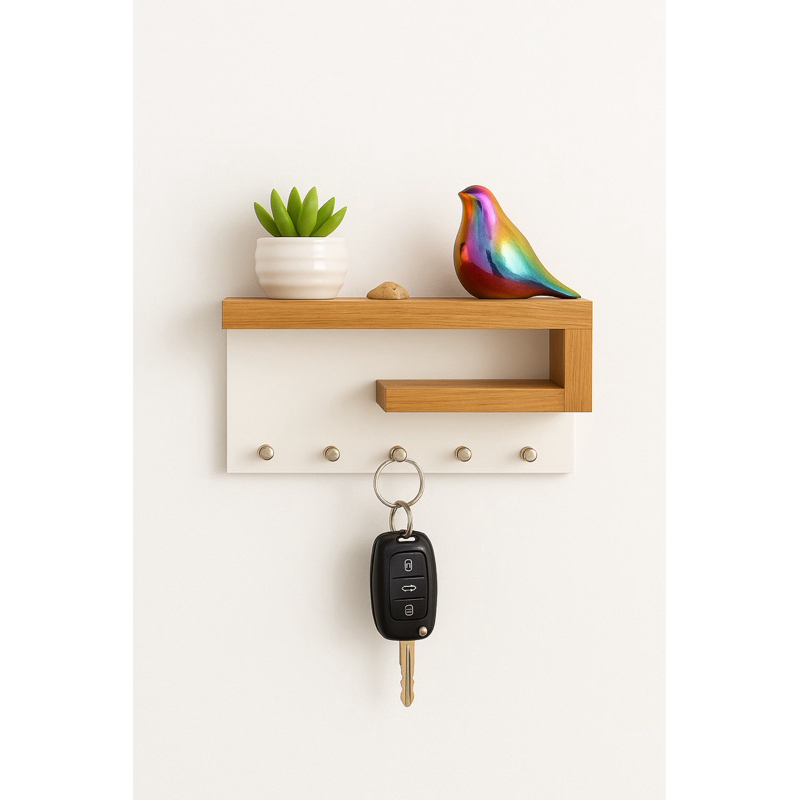 Porta Chaves de Parede com Prateleira MDF Branco Tx Amadeirado Louro Freijó Decoração e Organização