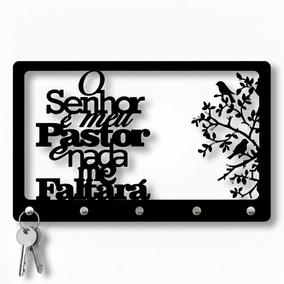 Porta Chaves de Parede O Senhor é meu Pastor Salmo 23 Religioso MDF 3mm + Fita 3M Pronta Entrega
