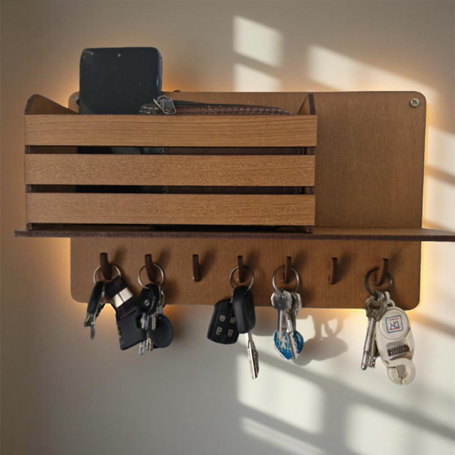 Porta Chaves De Parede, Organizador De Parede C/ Porta Carteira E Prateleira, Porta Chaves Madeira