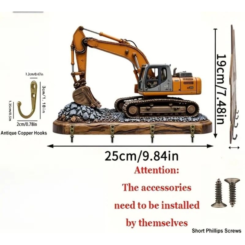 Porta-Chaves Decorativo Escavadeira – Gancho de Parede Temático de Construção