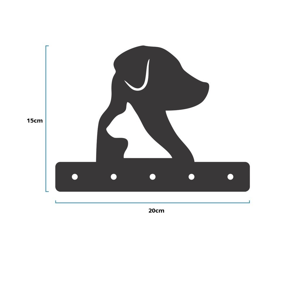Porta Chaves Gato e Cachorro MDF Preto Fosco
