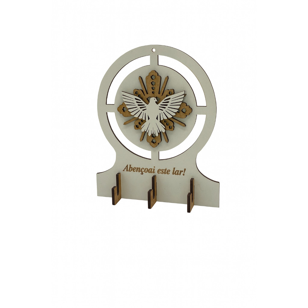 Porta Chaves MDF Espiritual Com Espírito Santo Abençoai Este Lar Perfeito Para Presentear e Decorar