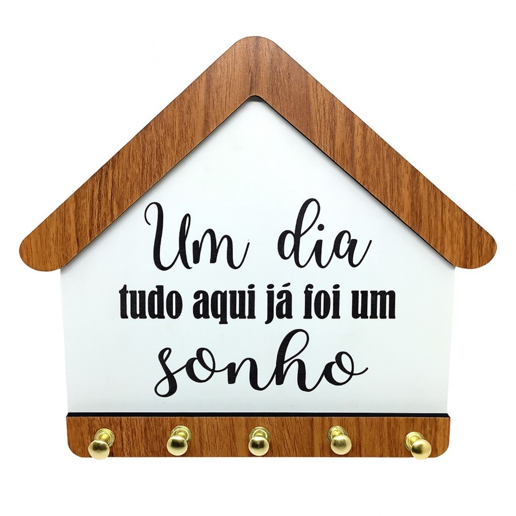 Porta Chaves Parede MDF Casinha Decorativo Organizador Hall Entrada Frase Sonho