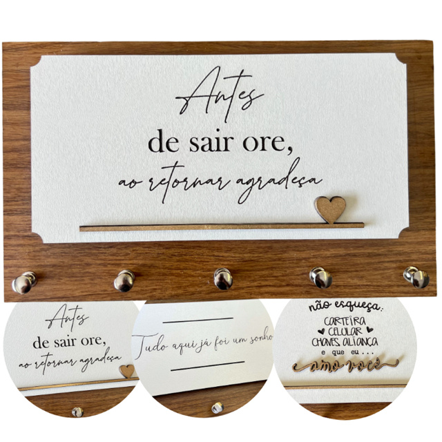 Porta Chaves Retangular De Parede Para Apartamento Decoração Casa Moderna Minimalista Cristã Em MDF