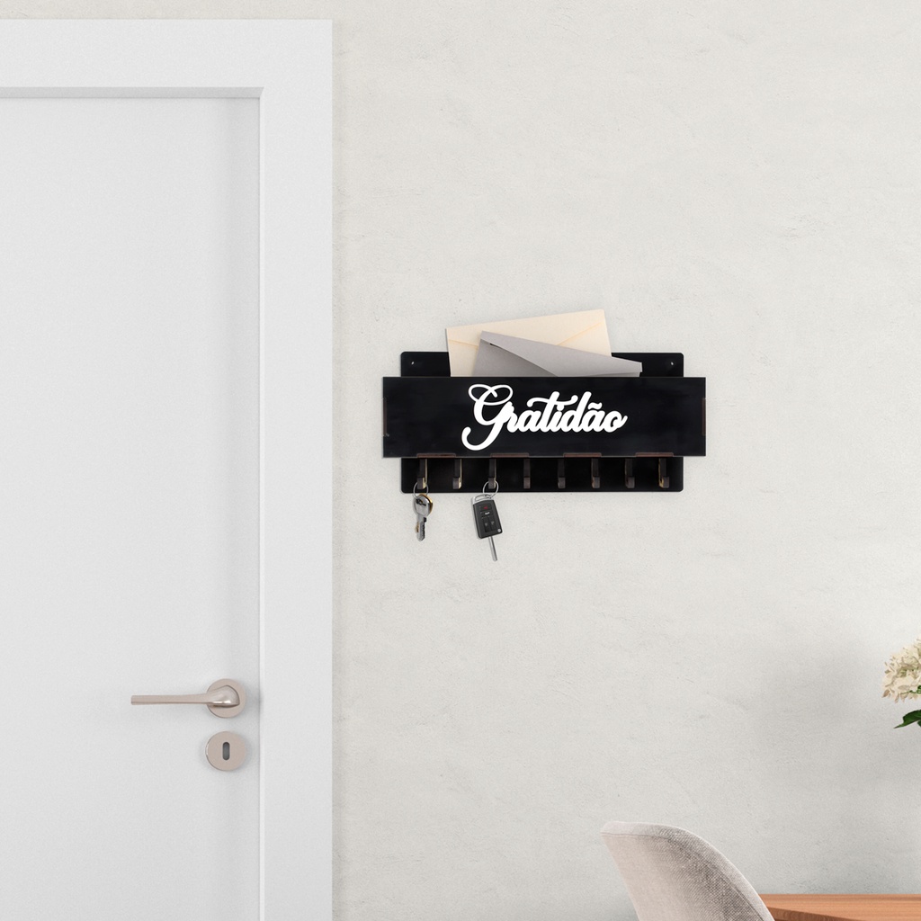 Porta Chaves Suporte 15x30cm Pendurador Gratidão