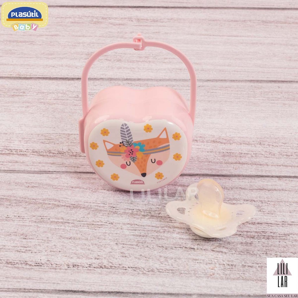 Porta Chupeta de Plástico para Bebê com Tampa Trava e Alça