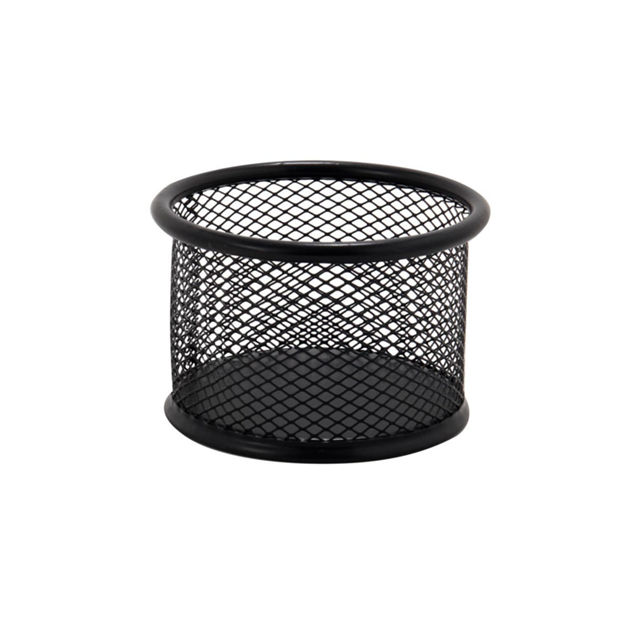 Porta clips aramado preto, modelo redondo em tamanho compacto. Material resistente de qualidade e durabilidade, excelente para guardar pequenos objetos e manter a organização de mesa e gaveta seja em casa ou no trabalho.