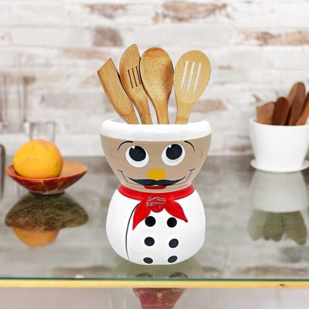 Porta Colher de Pau e utensílios Cozinheiro Cheff Ceramica