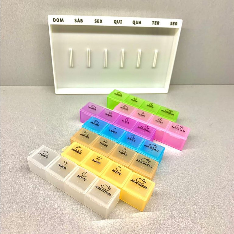 | Porta Comprimidos 11x18cm Semanal Com 28 Compartimentos Multicolori... este produto | R$ 19,50 | 22% | 4.9/5 | 646 |