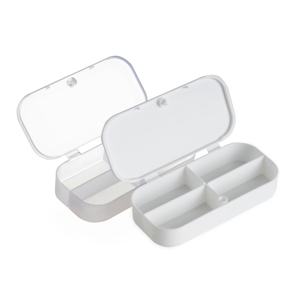 PERSONAL SILK Descrição: Porta comprimidos plástico com quatro divisórias. Altura : 4,5 cm Largura : 9,2 cm Espessura : 2 cm Peso aproximado (g): 14