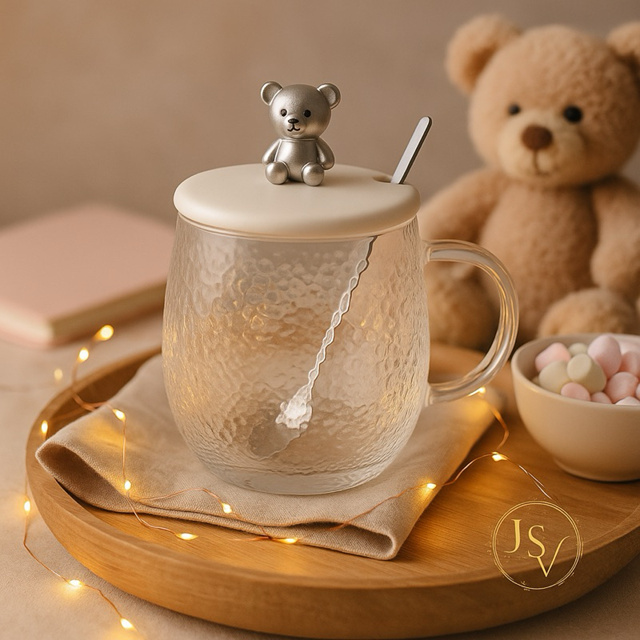 Porta Condimentos Tempero Açúcar Saleiro Açucareiro Em Vidro Com Tampa e Colher Mesa Posta Luxo Urso