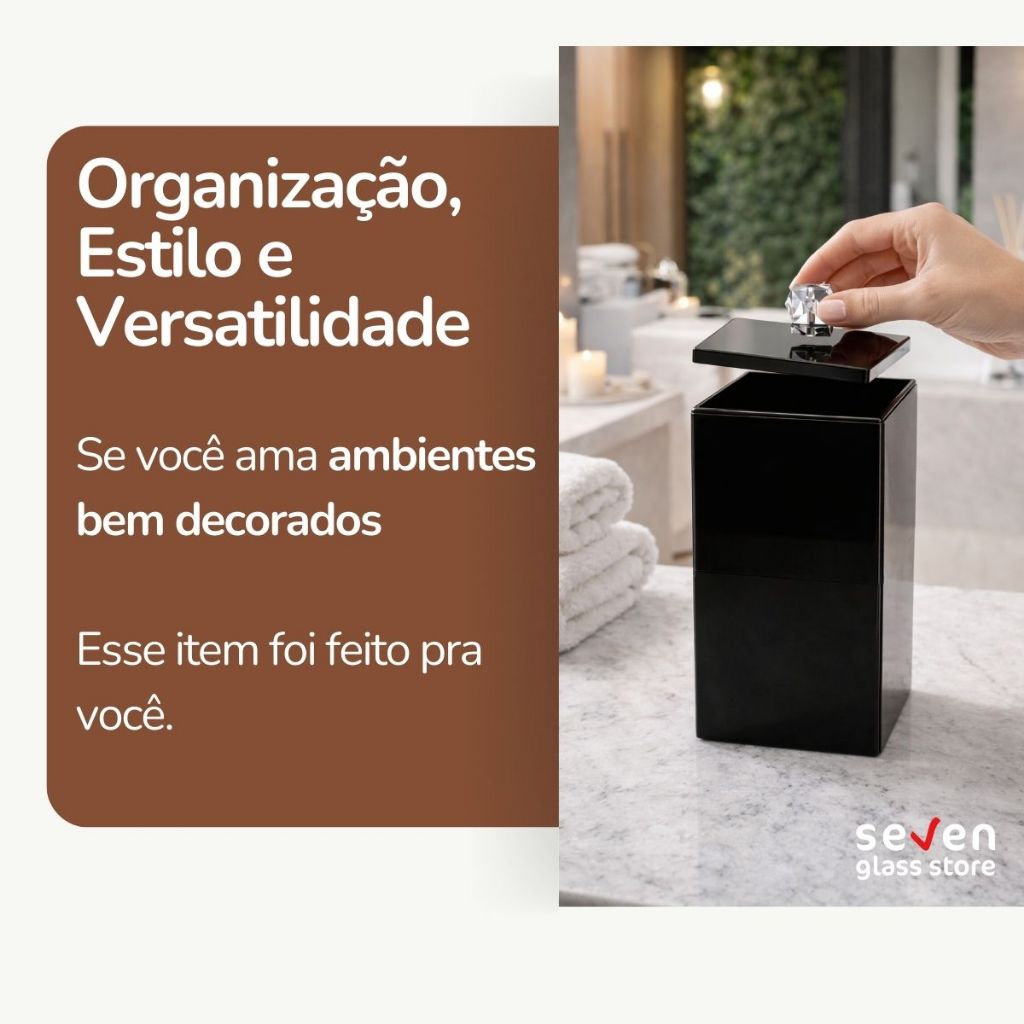 Porta cotonete com design sofisticado, ideal para manter o banheiro ou a penteadeira organizados com elegância. Possui acabamento espelhado que valoriza o ambiente e tampa com puxador, facilitando o uso no dia a dia. Além de funcional, é uma peça decorativa que transmite cuidado, limpeza e alto padrão, perfeita para lavabos, banheiros modernos e espaços de autocuidado. Caracteristica: Altura: 10 cm Largura: 7 cm Material: Vidro