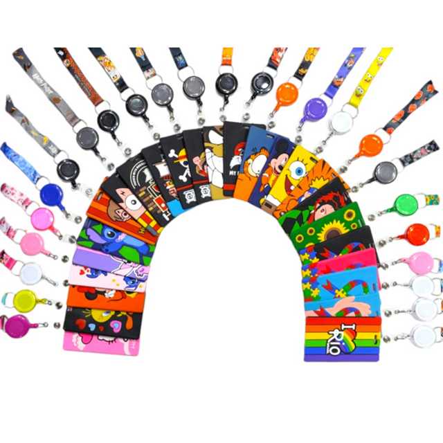 Porta-Crachá E Bilhete De Borracha Retrátil Com Cordão Vários Personagens E Desenhos