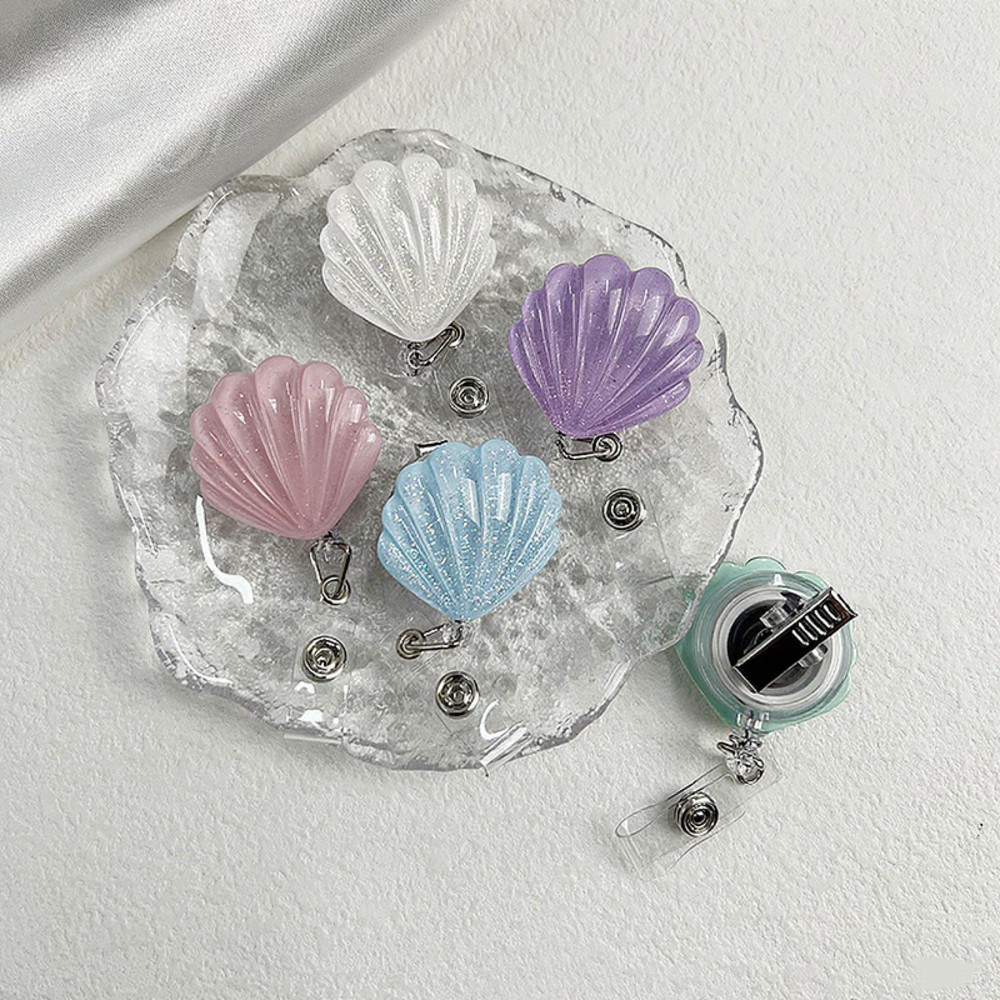 Porta-Crachá Retrátil Em Forma De Concha , Carretel De Plástico Leve Com Clipe De Jacaré Para Chaveiro De Cartão De Nome