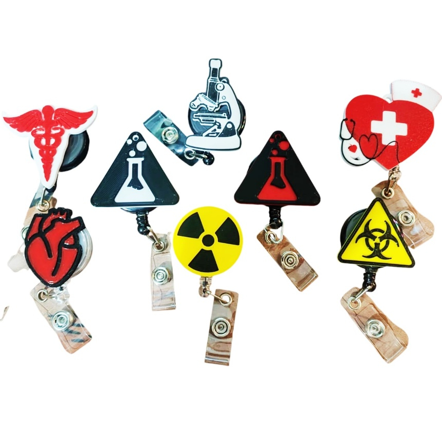 Porta Crachá Retrátil Personalizado Área da Saúde Medicina Enfermagem Laboratório Radiológico Perigo