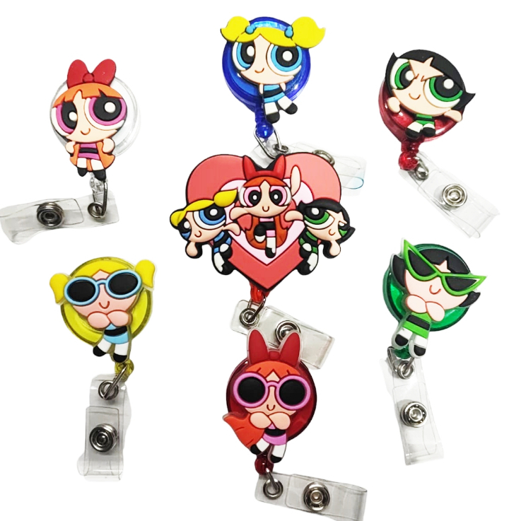 Porta Crachá Super Poderosas Retrátil Roller Clip Empresa Hospital Docinho Lindinha Florzinha