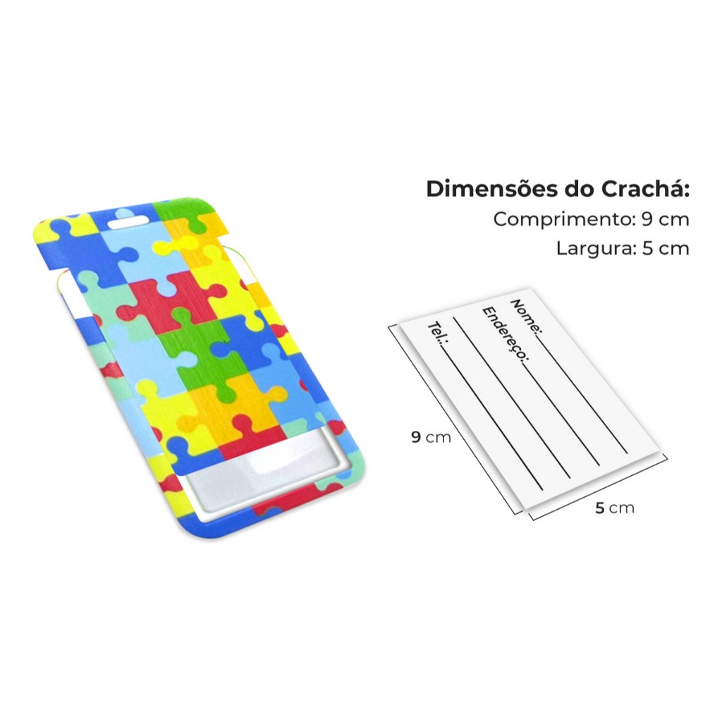 Porta Crachá Vertical C/ Cordão P/ Autismo/autista Cor Quebra Cabeça Amarelo