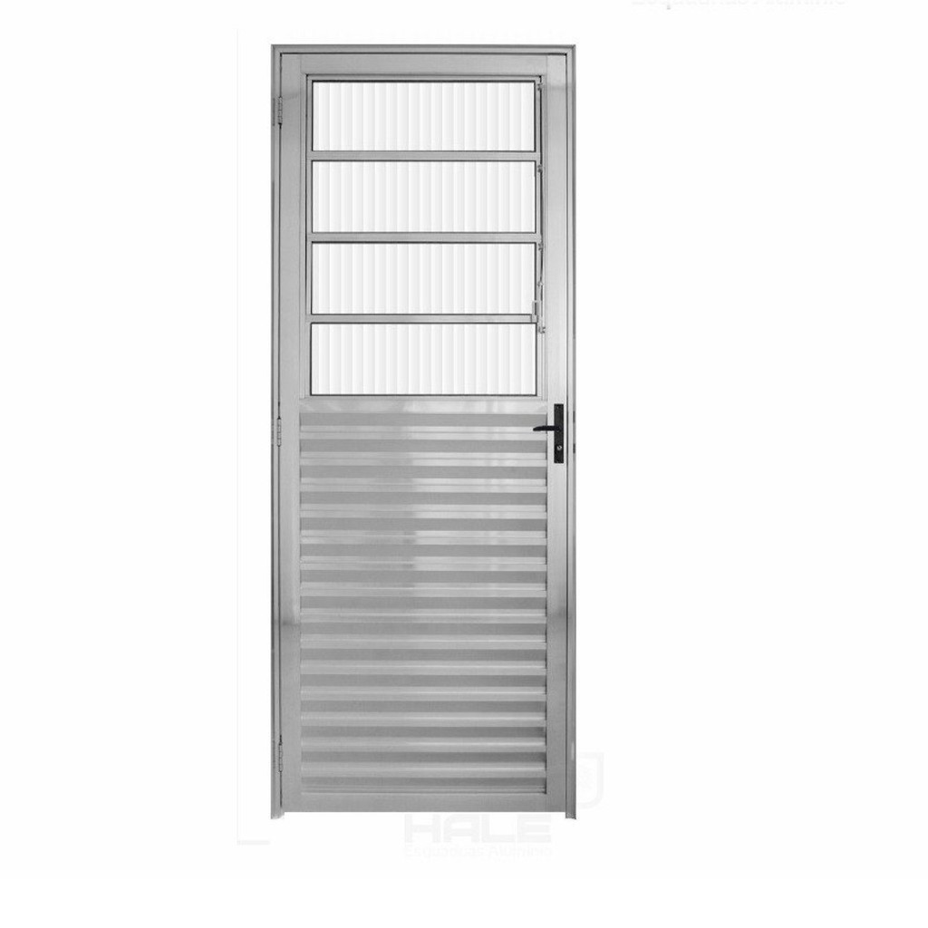 Porta de Alumínio com Basculante 210x70cm Hale Esquadrias Abertura Direita Cromado