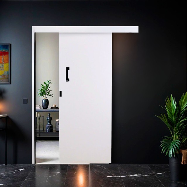 Porta de Correr Madeira 215x90cm Sobrepor Reversível Melamínico MGM Abertura Direita Branco