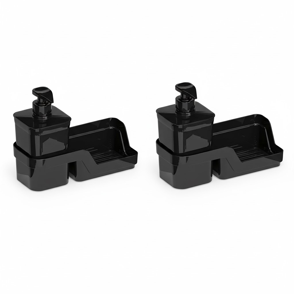 Porta Detergente com Porta Esponja 500ml | Dispenser e Organizador de Pia Cozinha Preto