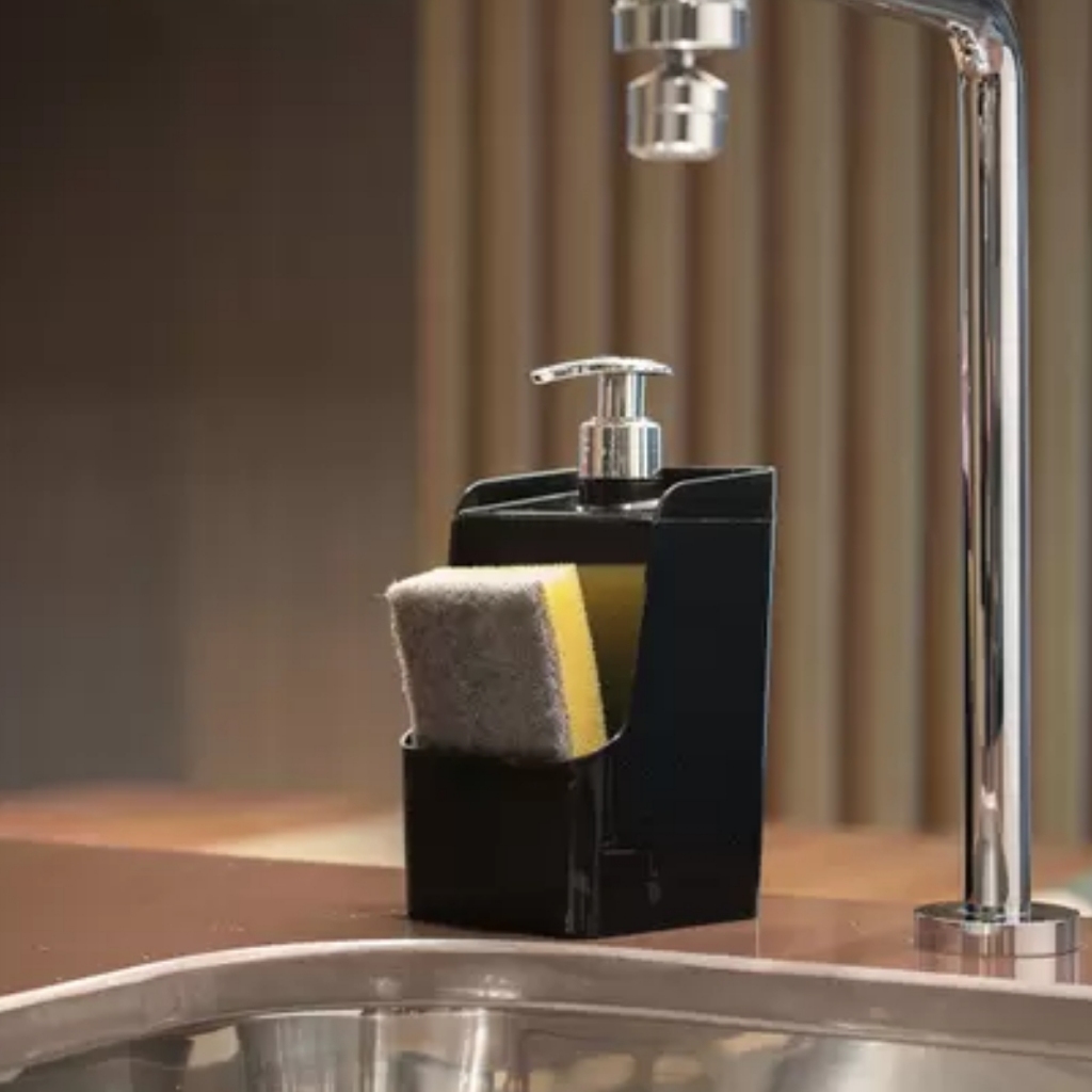 Porta Detergente Dispenser Porta Esponja Bucha Com Bico Dosador 500ml UZ - Preto